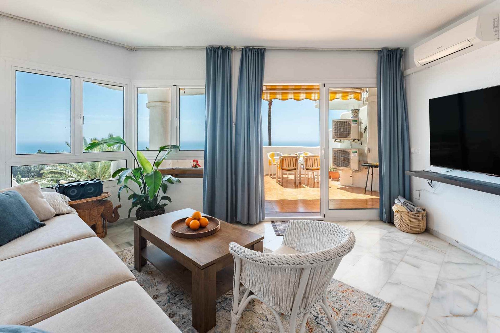 Discover Aurea with enchanting sea views in Calahonda. Neighbor to two popular restaurants Miel y Nata and The Family Restaurant. Large communal pool with children’s pool, umbrellas and sun loungers. The apartment is spacious with 5 beds, 2 bathrooms, living room with new sofa and large smart TV. Well-maintained kitchen with espresso machine, dishwasher, washing machine and storage room. Enjoy the rays of the sun and the stunning views to the sea from the terrace with new sofa furniture, dining area and electric grill. Free parking.
